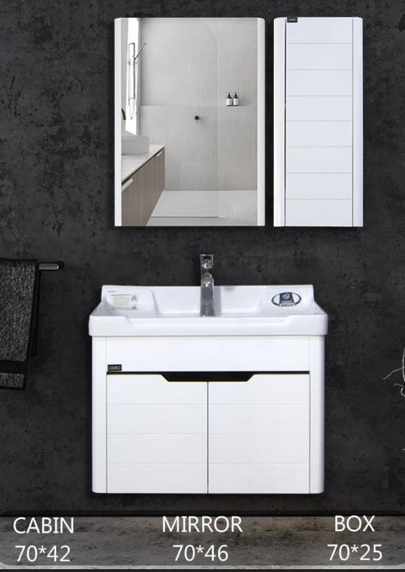 روشویی کابینتی لیزاکو مدل L154 یک ست روشویی کابینتی فوق العاده با کیفیت است که از ورق فومیزه PVC درجه یک ضد آب در تولید آن استفاده شده. کابین روشویی L154 لیزاکو در ابعاد 70*42 سانتی متر، آینه آن در ابعاد 70*50 سانتی متر و باکس در ابعاد 70*26 سانتی متر تولید می شود. استفاده از یراق آلات تمام استیل، ورق ضد آب ۱.۵ سانت و سنگ و چینی آلات درجه یک همه از مزایای تولیدات لیزاکو می باشد.