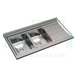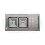 سینک روکار بیمکث مدل 919 دارای دو لگن و یک سینی است که برای قرار دادن وسایل مناسب خواهد بود. ابعاد سینک 60*120 سانتیمتر است. ضخامت ورق این سینک 0.7 میلیمتر و عمق لگن آن 20 سانتیمتر است. از لوازم جانبی این سینک میتوان به سبد و تخته گوشت اشاره کرد. همچنین این محصول مجهز به سیفون و متعلقات مربوط به آن است.