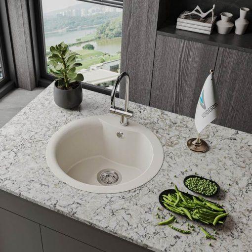 سینک پائولو 500 گرانیتی وندرنی مدل توکار و زیرکورینی گرد، تولید شده از مواد با کیفیت بالا و دارای خاصیتهای فوق العادهای است که میتواند به آشپزخانه شما زیبایی و جلوه ی بیشتری ببخشد. با جنس گرانیتی آن، سطحی بسیار مقاوم در برابر خش، رسوب، لکه دارید که به شما اطمینان میدهد که میتوانید به مدت طولانی از آن استفاده کنید.